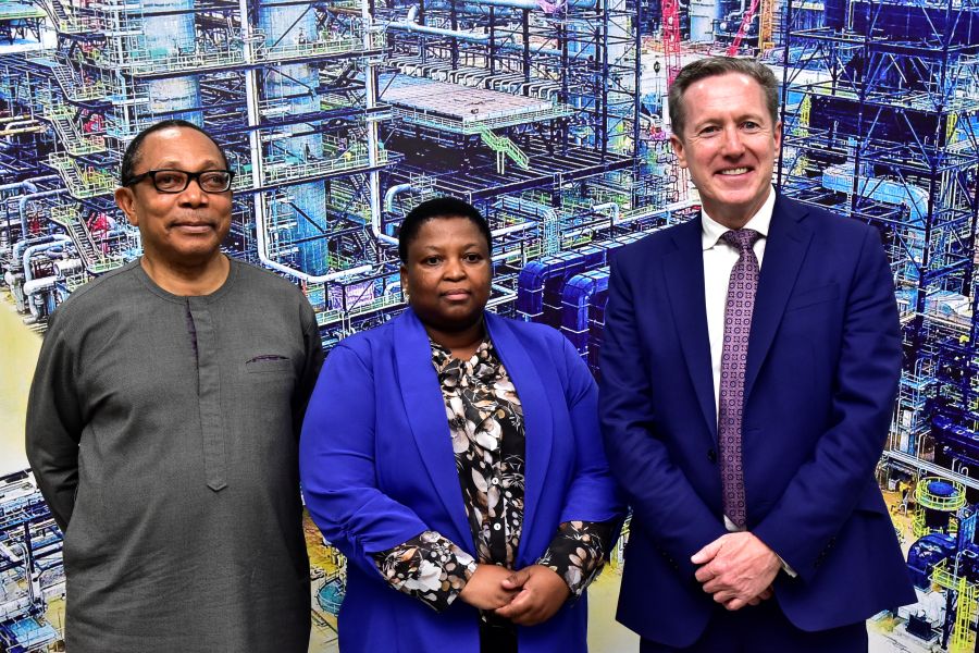 L-R, Group Chief Brand & Communications Officer, Dangote Industries Limited, Anthony Chiejina; Dangote Petroleum Refinery Head Economic Scheduling and Planning, (EPS), Lindelani Zondi;