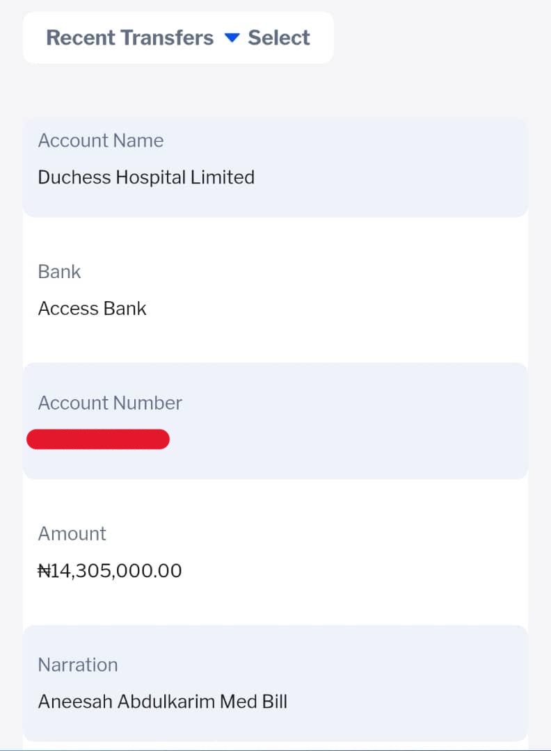 “They raised a bill of ₦14,305,000 for the surgery and told us that once payment was made, the procedure would be done immediately,” Dr. Rabiu said.