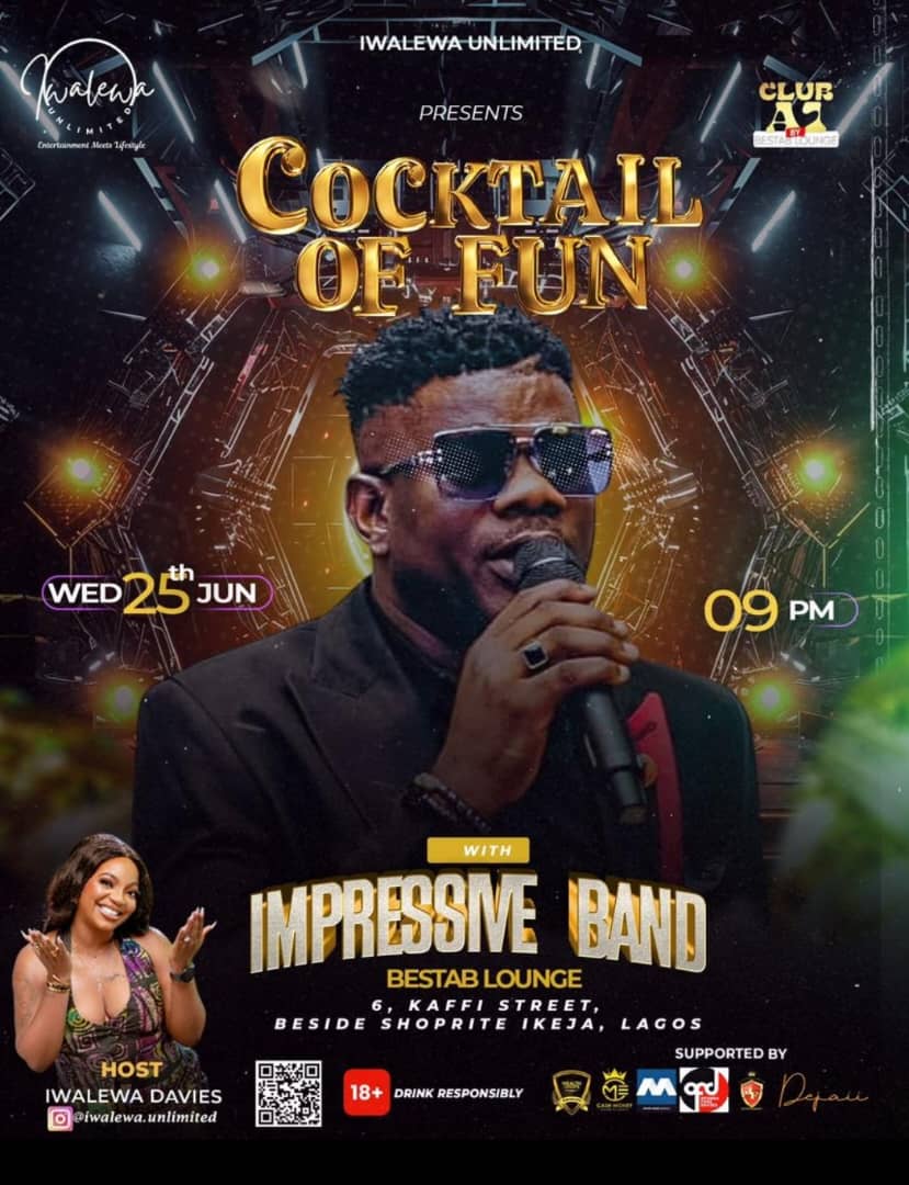 Lagos’ most anticipated monthly entertainment gig, Cocktail of Fun, returns this Wednesday, June 25, 2025, at Bestab Lounge, 6 Kaffi Street, beside Ikeja City Mall—and it’s promising another unforgettable night of music, networking, and pure vibes.