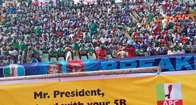 National Leader of the ruling All Progressives Congress (APC), Bola Ahmed Tinubu, The National Chairman of the party, Adams Oshiomhole, Ogun State Governor Ibikunle Amosun and Minister of Transportation Rotimi Amaechi among others have graced the President Muhammadu Buhari’s campaign in Lagos.