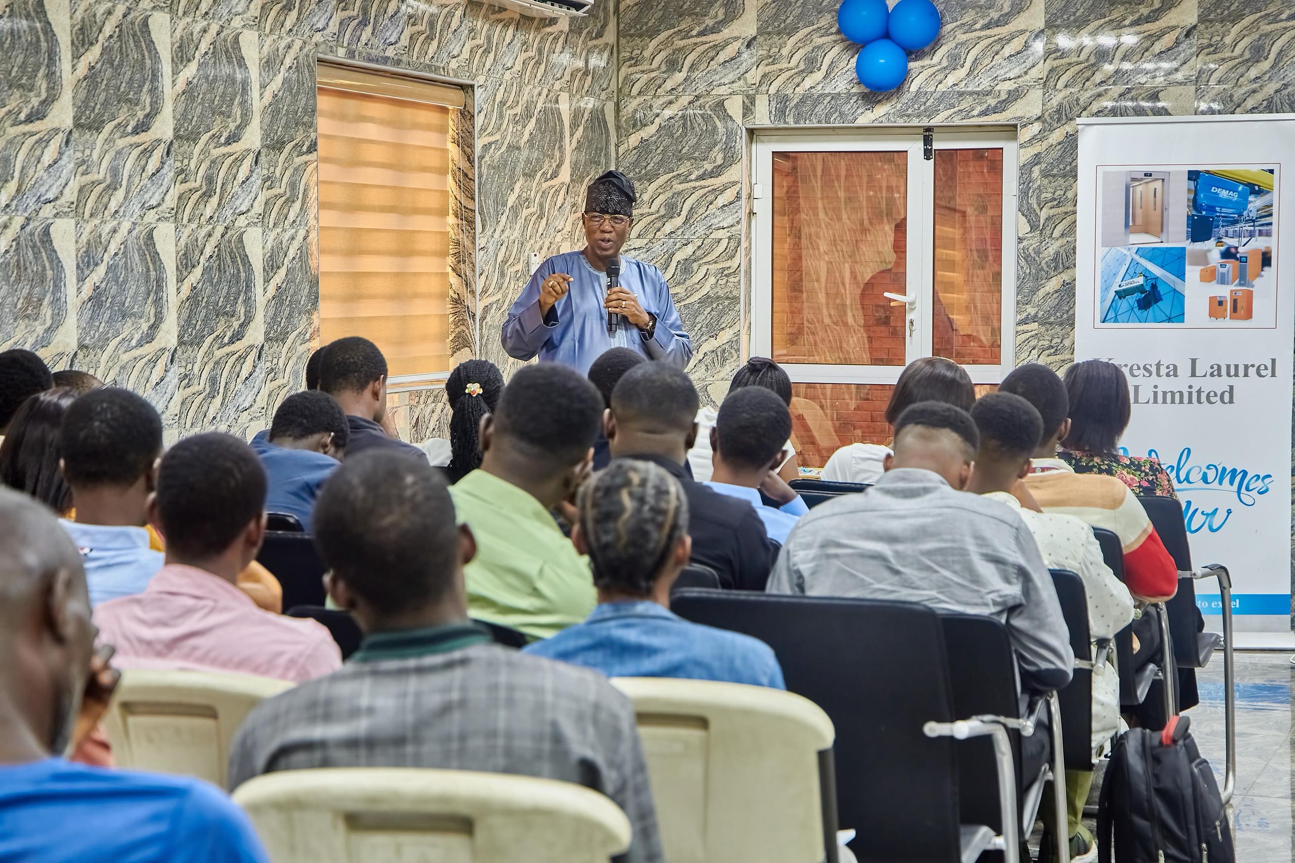 The day-long training featured presentations by Engr. Dideolu Falobi, FNSE, Managing Director of Kresta Laurel, who walked students through the company’s legacy of innovation and engineering excellence. Other speakers included Mr. Kehinde Sogunle, former Commissioner for Finance in Ogun State, who gave an engaging lecture on leadership; Mr. Sunkanmi Adegorite, Executive Director of Sales, who led a session on fire safety; and Habib Lukman, the company’s HSE Officer, who shared insights on industry best practices in health, safety, and environment.
